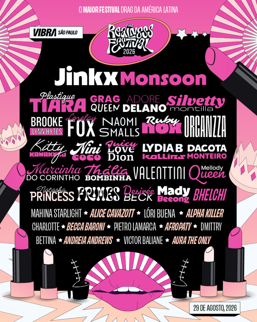Considerado o maior festival drag do mundo em números e cotado para ser certificado pelo Guinness Book, o evento chega à sua quinta edição provando que o protagonismo brasileiro na cena não é uma fase, mas uma potência global consolidada. Programado para 29 de agosto de 2026, o The Realness transforma a Vibra São Paulo — uma das mais imponentes casas de espetáculos do país — no epicentro mundial da arte transformista. O festival reúne mais de 30 artistas em um line-up que equilibra com maestria lendas internacionais, super estrelas em ascensão e a realeza nacional.